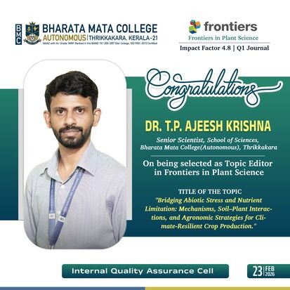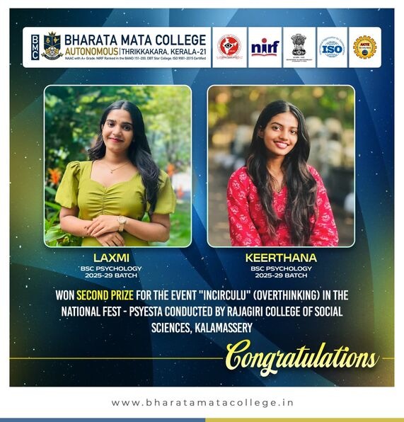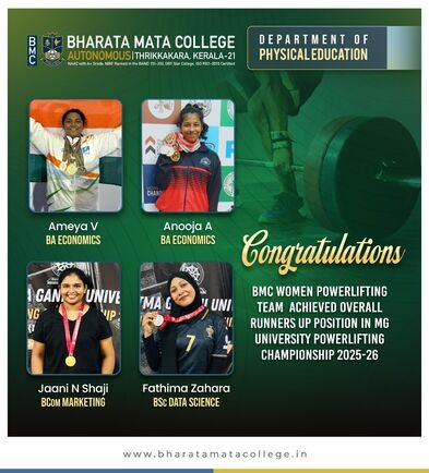 Bharata Mata College (Autonomous) is a nationally accredited first grade arts and science co-educational institution of higher learning in the aided sector, under Bharata Mata Educational Trust owned and managed by the Archdiocese of Ernakulam-Angamaly. Established in 1965 by His Eminence the late Joseph Cardinal Parecattil, the college is affiliated to the Mahatma Gandhi University, Kottayam. The college was included under section 2 (f) and 12 (b) of UGC Act 1956 in 1976 and accredited at the A+ level by NAAC in 2024.