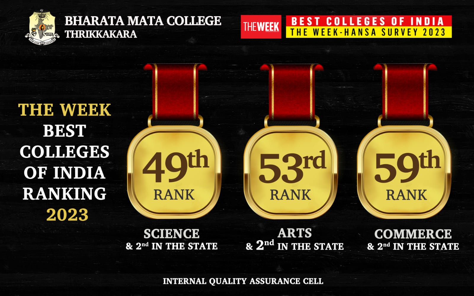 Bharata Mata College Thrikkkara is Ranked 49th in the Country in Science Colleges Category and 2nd in the State in THE WEEK Best Colleges of India Ranking 2023