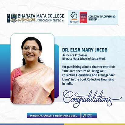 Huge congratulations to Dr. Elsa Mary Jacob for publishing for publishing a book chapter entitled: "The Architecture of Living Well: Collective Flourishing and Transgender Lives".
