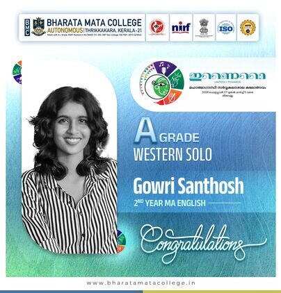 We celebrate Gowri Santhosh(2nd Year MA English) for securing A Grade in Western Solo at the MG University Kalolsavam 2026.